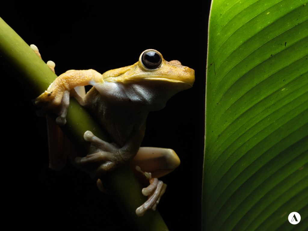 Das Foto der Woche entstand vor einigen Jahren in Costa Rica. Ich habe dieses Foto wieder entdeckt, als ich meine Foto für den Fotowettbewerb ausgesucht habe. Entstanden ist es in der Nähe des Manuel Antonio Nationalparks während eines Workshops zum Fotografieren von Fröschen. Der Guide ist ebenfalls Fotograf und hat ein tolles Buch über den Nationalpark veröffentlich, ich durfte seine Blitzanlage und sein Stativ verwenden, sodass ich außer meiner Kamera und einem Makroobjektiv nichts mitbringen musste.
