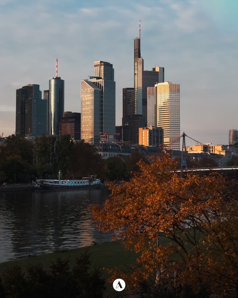 Mein Foto der Woche ist in Frankfurt entstanden. Frankfurt am Main ist die einzige Stadt in Deutschland, in der es Hochhäuser in der Innenstadt gibt. Deshalb wird Frankfurt auch Mainhattan genannt. Die Skyline ist ein Wahrzeichen der Stadt und wenn man mit dem Flugzeug anreist, kann man – je nach Landebahn – die Stadt rechts aus den Fenstern von oben sehen. Für mich ist dann das Zeichen, bald im Feierabend zu sein.